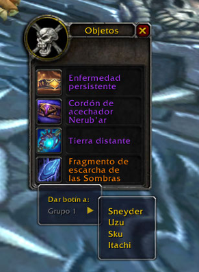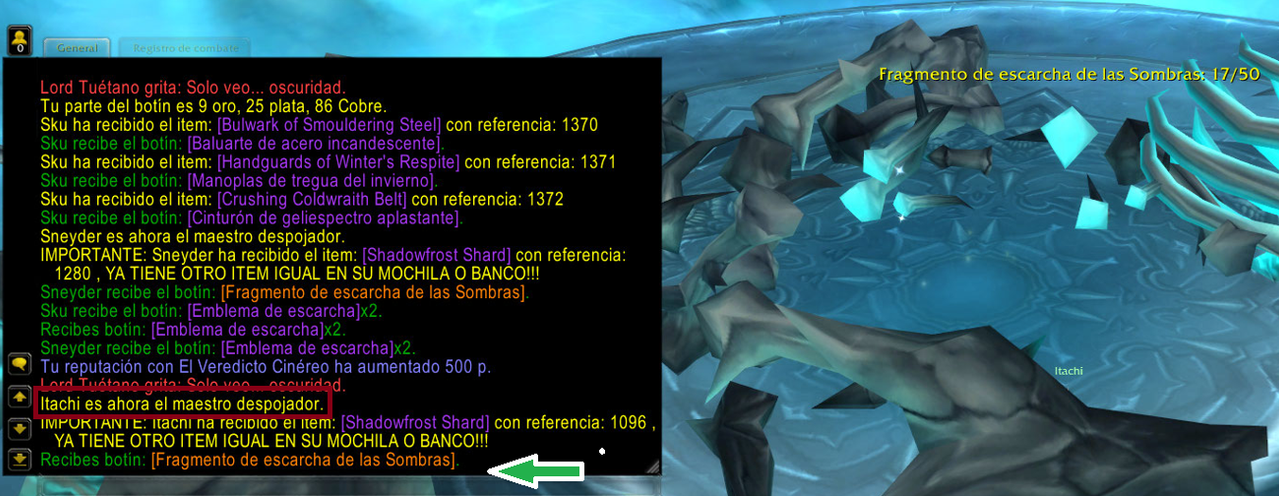 • Opcional puede dejar en Botín Libre para que recoja el designado si es el que mira el fragmento, caso contrario pasarle el master loot directamente o de preferencia.