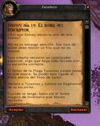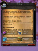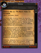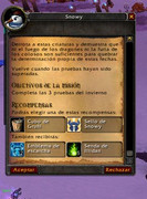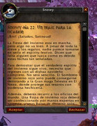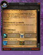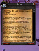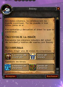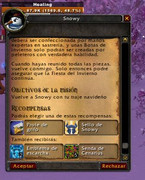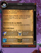 En la fecha, nuestro muñeco de las nieves nos va a solicitar un set de vestimenta de navidad. Este set se ajusta a cada facción, por lo que abrá una misión para la alianza, y otra para la Horda (diferentes, claronga).