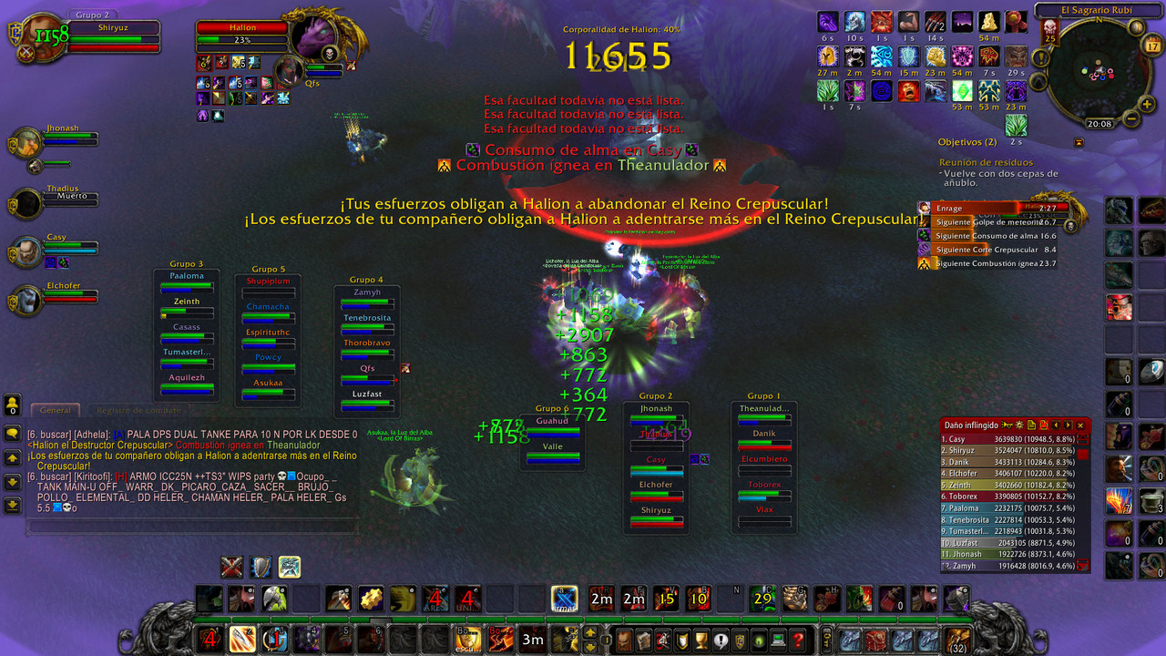 - 5 PRIMEROS MELES(PALA/WAR/DK/FERAL/MEJORA/PICARO) EN DAÑO INFLINGIDO EN MUNDO CREPUSCULAR Y CAZADORES DENTRO DEL TOP 5 DAÑO INFLINGIDO EN MUNDO FISICO