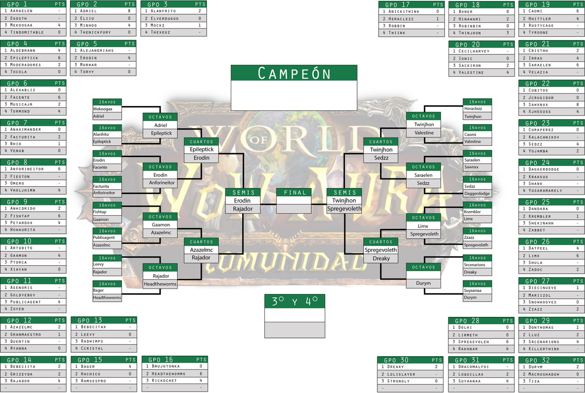 Aquí dejamos la tabla de posiciones y el resultado de los combates: