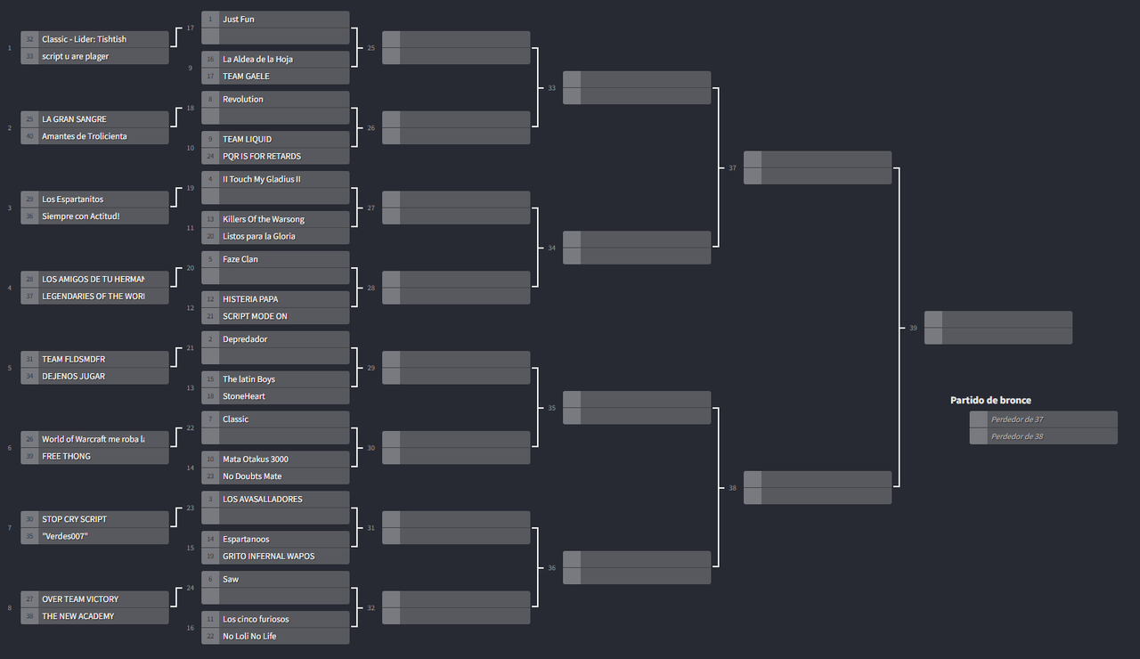 OCTAVO LUGAR: PQR IS FOR RETARDSEste team no ha enviado ninguna lista de los miembros del team para asignar premios, por lo que no se ha entregado ninguno.