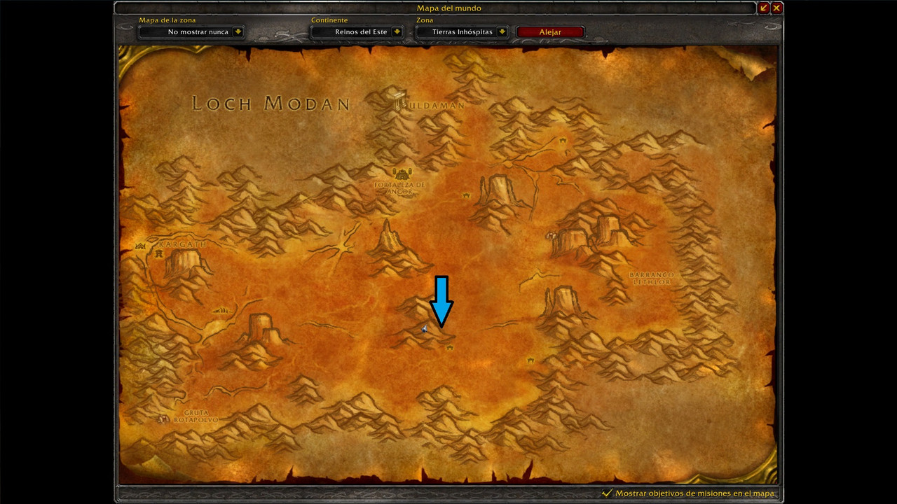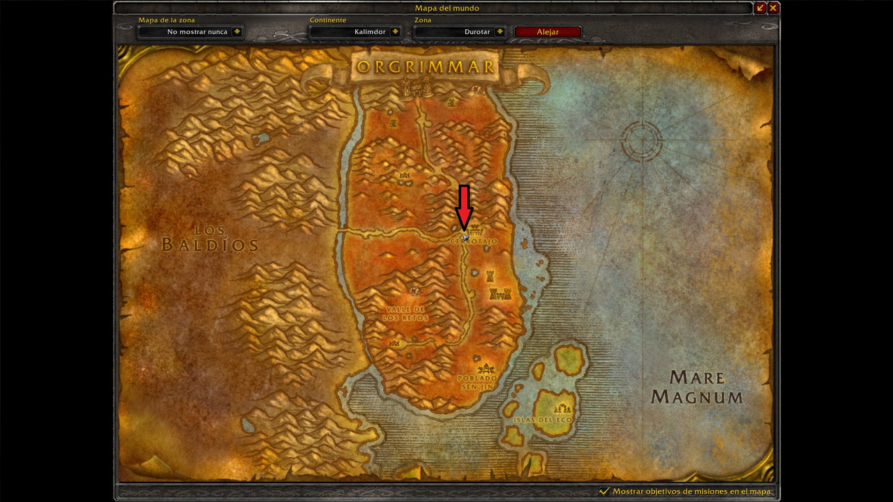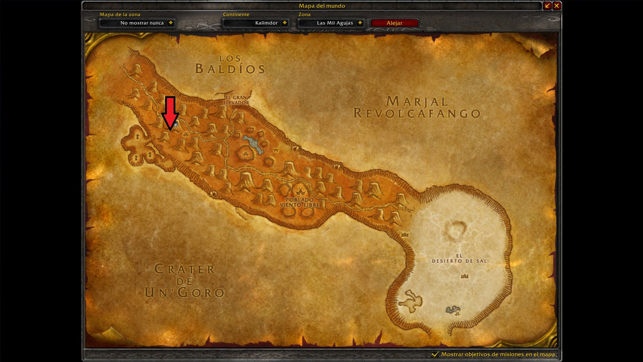 Debemos encontrar a Toribio, él se encuentra en la zona de Mil Agujas, al llegar a su posición completaremos la primera misión y nos dará la siguiente misión. Entregar el emblema de Toribio a Vaca Nuela en Durotar.