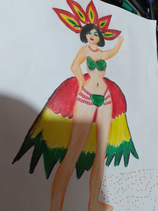 Proceso del Dibujo: es mixto use lápiz de dibujo al inicio lo remarque con tinta negra, y lo pinte con lápices pastel