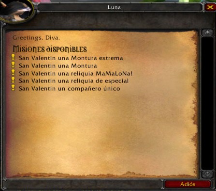 Es el encargado del evento de revisar a todos nuestros enamorados y solitarios mensajeros, tiene como fin repartir las Esencias de Elune este ítem es importante ya que es necesario para poder cambiar por la "Carta de Amor Eterno", y obtener grandes recompensas.