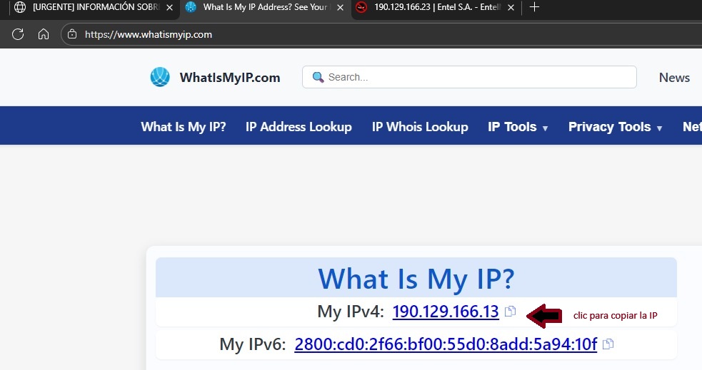 - Consulta tu IP pública en: https://www.whatismyip.com/